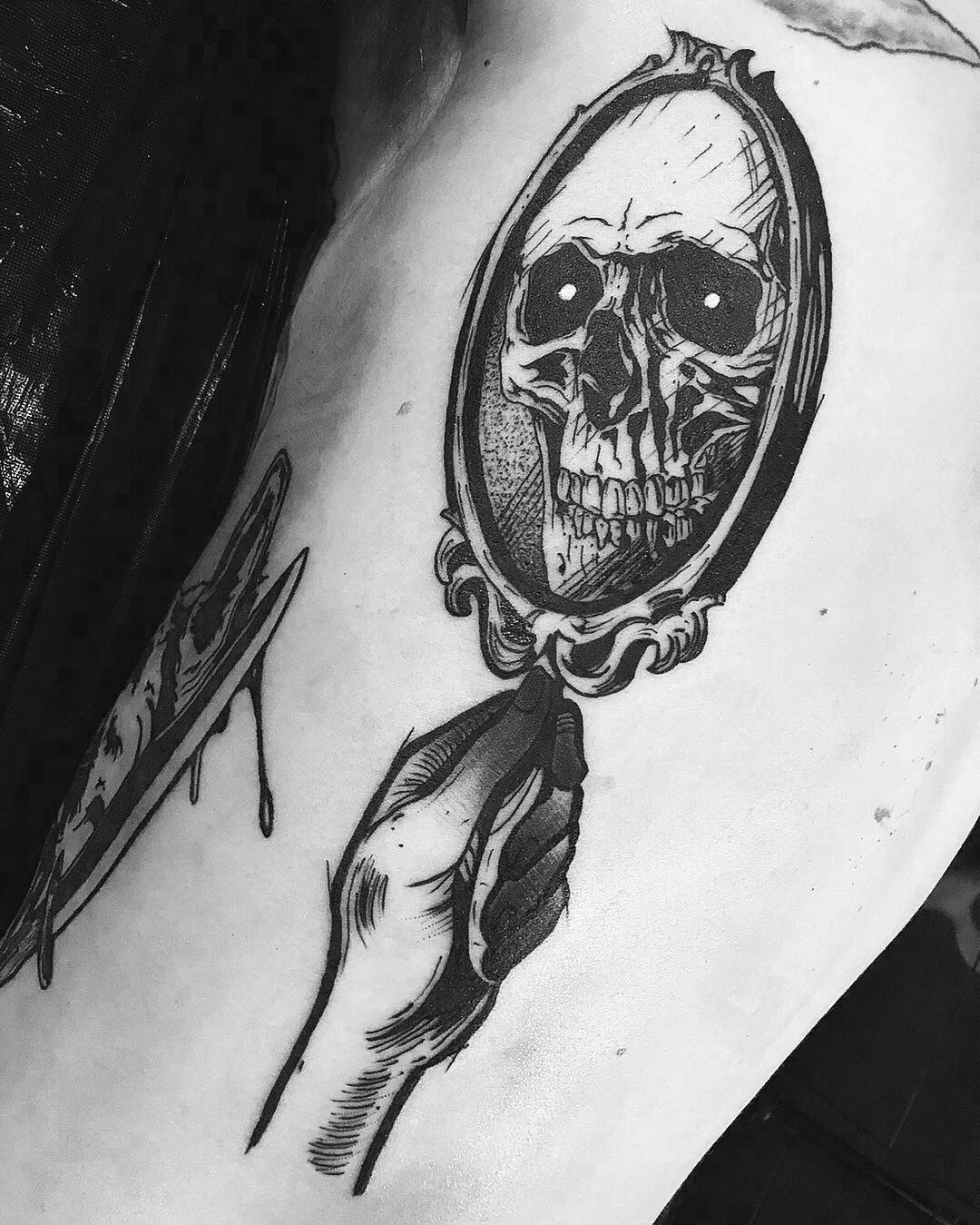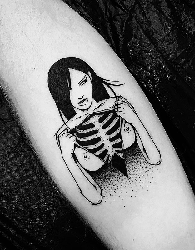 Mysta creates dark graphic tattoos with beautiful melancholy and explicit techniquE. His clean style is truly influenced by his former years as a fashion designer, working for luxury fashion houses as Kenzo and Givenchy.